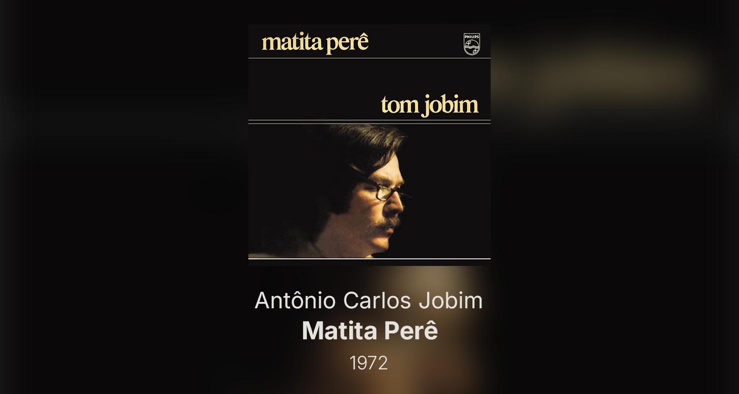 Begun in Brazil and finished in New York City, at the height of Brazilian junta's consolidation of power, imposition of martial law and censorship, Matita Perê was an answer to those who thought Jobim had nothing to offer a new generation of musicians. Like the Buddha going under the pipal tree, liberating himself from samsara, attaining enlightenment, opening his eyes, and the world witnessing his true power, so did Tom go into the music of Brazil's ecology, come back transformed, with music more powerful in ways that few could have imagined, and released a record that sounds unlike anything else in his oeuvre or much anyone's else.
